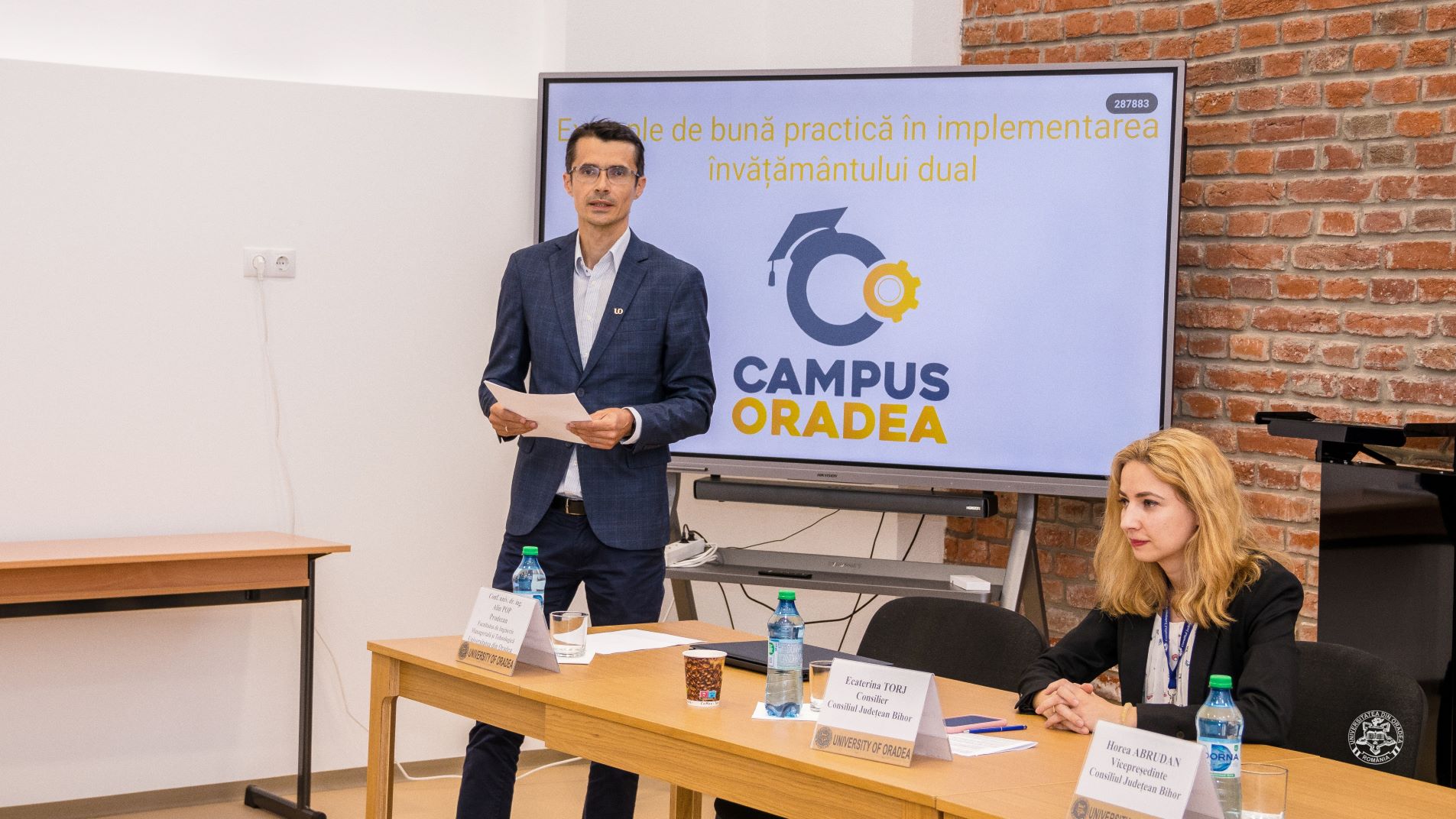 Reprezentantul Universității din Oradea în proiectul Consorțiu pentru învățământ dual „Campus Oradea”, conf. univ. dr. Alin Pop, prodecanul Facultății de Inginerie Managerială și Tehnologică, a subliniat că evenimentul își propune să fie „un dialog, între parteneri, cu privire la modul în care se îmbină pregătirea academică cu practica în mediul real de muncă”.