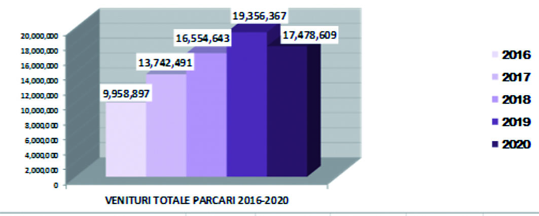 Adevărată găină cu ouă de aur a municipalității, parcările urbei au adus în anul Covid mai puțini bani decât în 2019, cu peste 1,9 milioane de lei. Municipalitatea a încasat, astfel, 17,4 milioane lei, față de 19,3 milioane în 2019. În structura veniturilor din parcări, singura rubrică aflată în creștere în 2020 a fost cea a abonamentelor pentru parcările de domiciliu – de la 1,8 milioane de lei în 2019, la 2,2 milioane anul trecut.