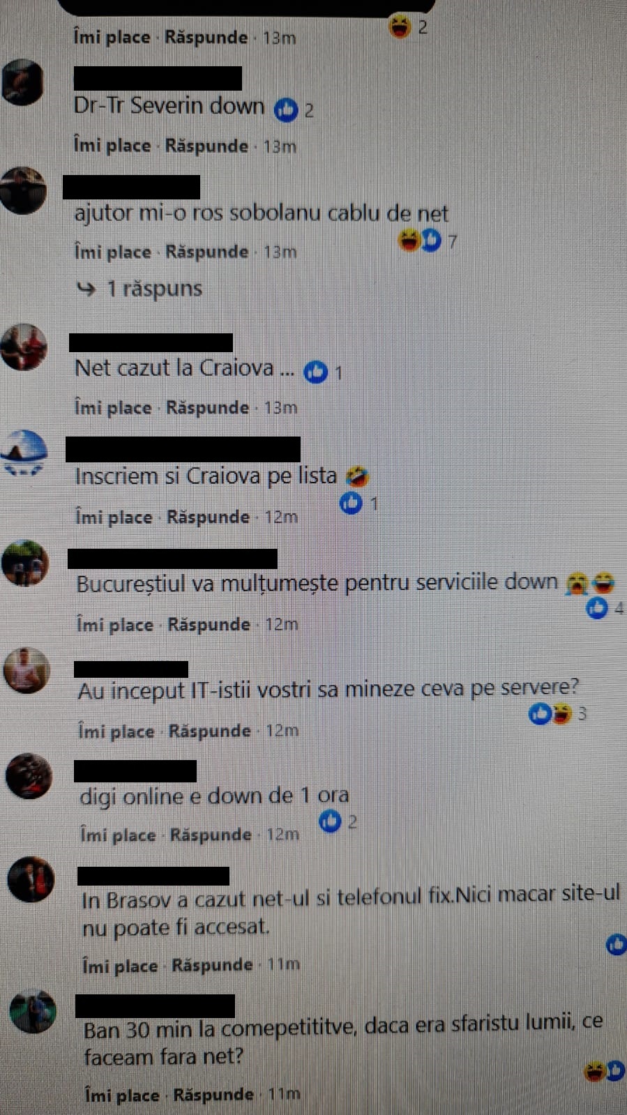 Problema a fost semnalată de utilizatori și pe pagina de Facebook a companiei. Problema a fost remediată tot în cursul serii de miercuri.