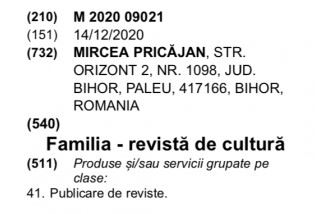 Recent ,fostul șef al casei de Cultură a Municipiului Oradea, Flavius Bunoiu, fost coleg în USR cu Mircea Pricajan, semnala că marca Familia aparține unei persoane fizice. Redactorul șef adjunct al Revistei Familia, Mircea Pricăjan a făcut cerere la OSIM să înregistreze marca Familia.