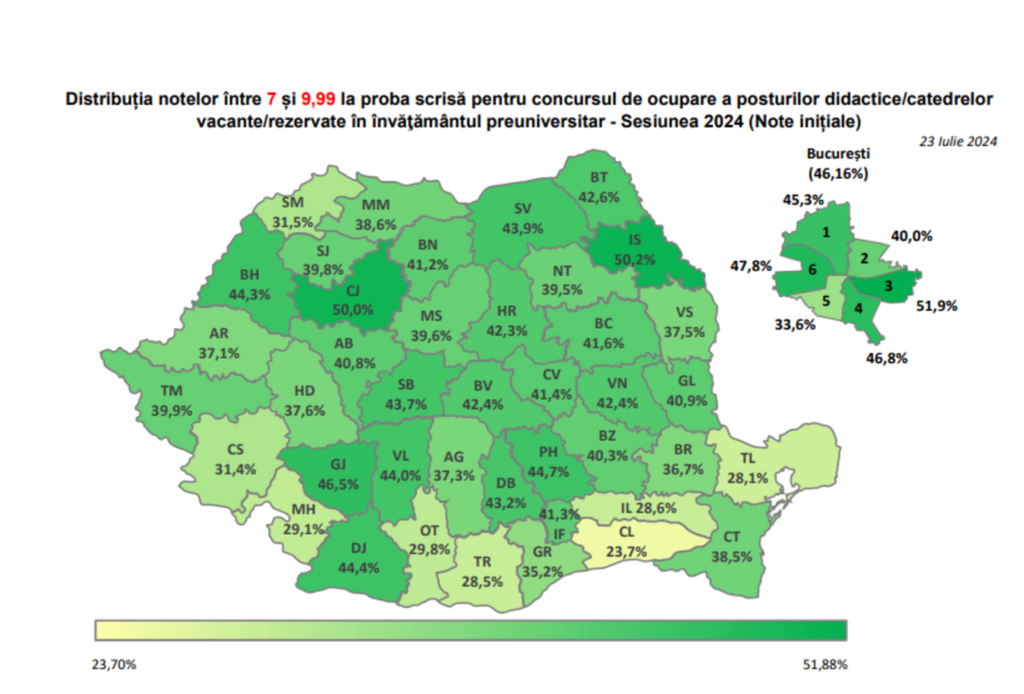 Din cei 1.181 de candidați bihoreni care au participat la examen, 523 au obținut note cuprinse între 7 și 9,99. În schimb, 456 de candidați au primit note între 5 și 6,99, ceea ce înseamnă că aceștia nu pot ocupa posturi de titulari, dar pot fi angajați ca suplinitori.