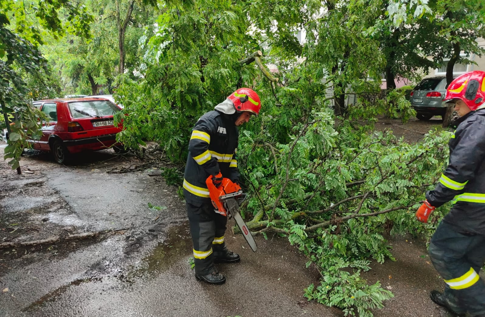 Pompierii Detașamentului 1 Oradea acționează de asemenea, pe strada Bumbacului din municipiu, pentru înlăturarea unui arbore căzut pe 4 autoturisme, respectiv pe strada Tăbăcarilor, unde evacuează apa din curtea unei case.