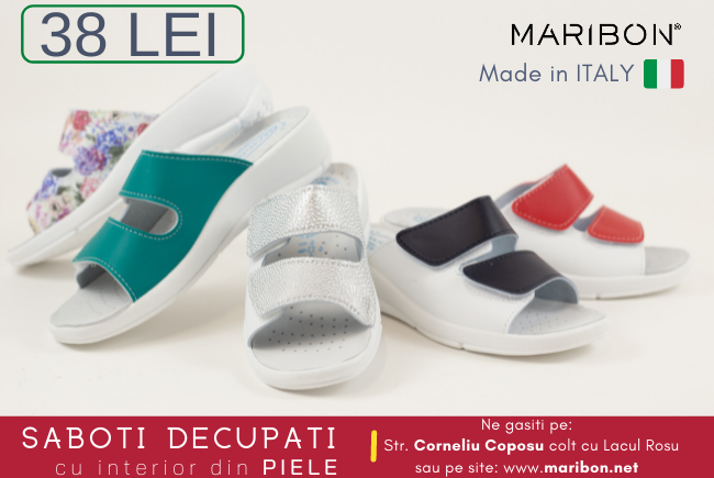 Saboți medicali disponibili la Maribon Pentru cei în căutare de astfel de încălțăminte Maribon.net este o recomandare. Regăsim o gamă vastă de astfel de încălțăminte și nu numai, realizată din piele naturală și perfectă pentru a fi purtată timp îndelungat. Unele modele dispun de talpă ce sporește confortul datorită inserției de gel soft.