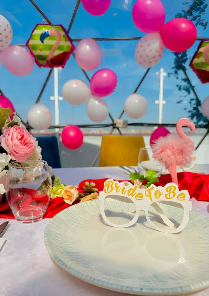 Veți intra într-un spațiu magic, un igloo privat , elegant amenajat doar pentru voi, unde intimitatea se împletește armonios cu un decor personalizat. Voi decideți tema și noi creem magia cu accesorii delicate în nuanțe de roz ,alb , auriu conferind un aer feminin și primitor. Baloanele, selectate cu atenție, sunt decorate cu motive de flamingo & BRIDE TO BE, completând astfel atmosfera plină de veselie și culoare. Servetelele roz adaugă o notă de eleganță, făcând fiecare detaliu să conteze în crearea unui ambient perfect.