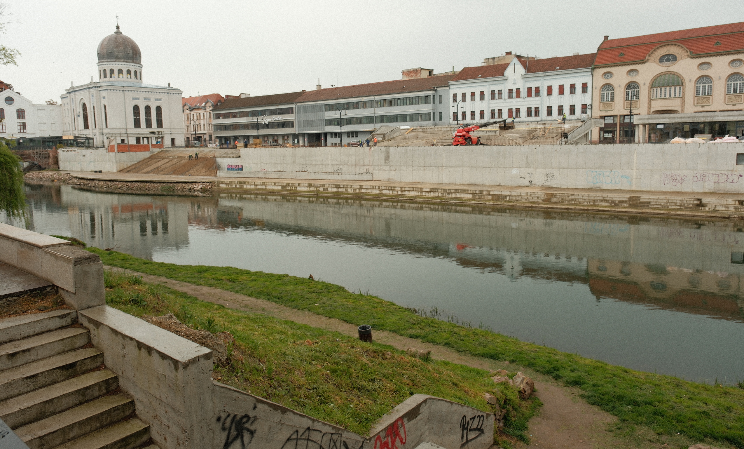 Constructorul lucrează la zona de trepte exterioare și gradene, ce vor conduce către promenada de pe malul Crișului Repede și care vor fi îmbrăcate în plăci de granit. În paralel lucrează la structura de beton și la părțile de rezistență ale pavilionului (Corpul C1).