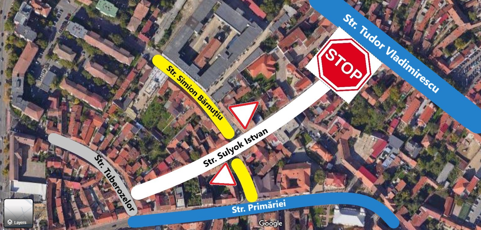 Tot de joi, 6 martie, se vor schimba prioritățile în zona intersecțiilor Vladimirescu – Sulyok – Bărnuțiu. Strada Tudor Vladimirescu va redeveni prioritară la intersecția cu strada Sulyok Istvan. De asemenea, în intersecția dintre străzile Simion Bărnuțiu și Sulyok, drumul prioritar va fi strada Simion Bărnuțiu, pe direcția spre strada Primăriei. Aceste modificări readuc sistemul de circulație la configurația anterioară din zonă.