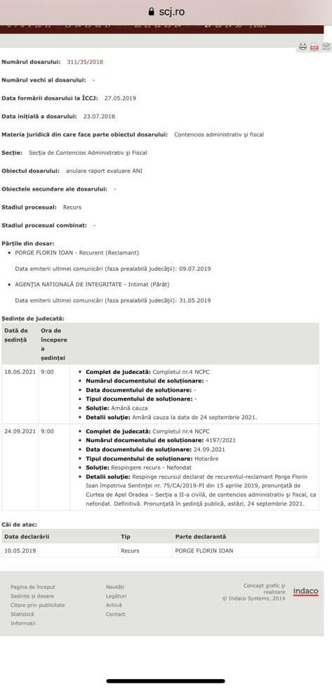 Sentința, care este definitivă, a fost pronunțată pe 24 septembrie, la 3 ani de la decizia ANI. Potrivit unui comunicat al ANI, din iulie 2018, instituția a constatat că primarul Florin Porge se află în conflict de interese administrativ.