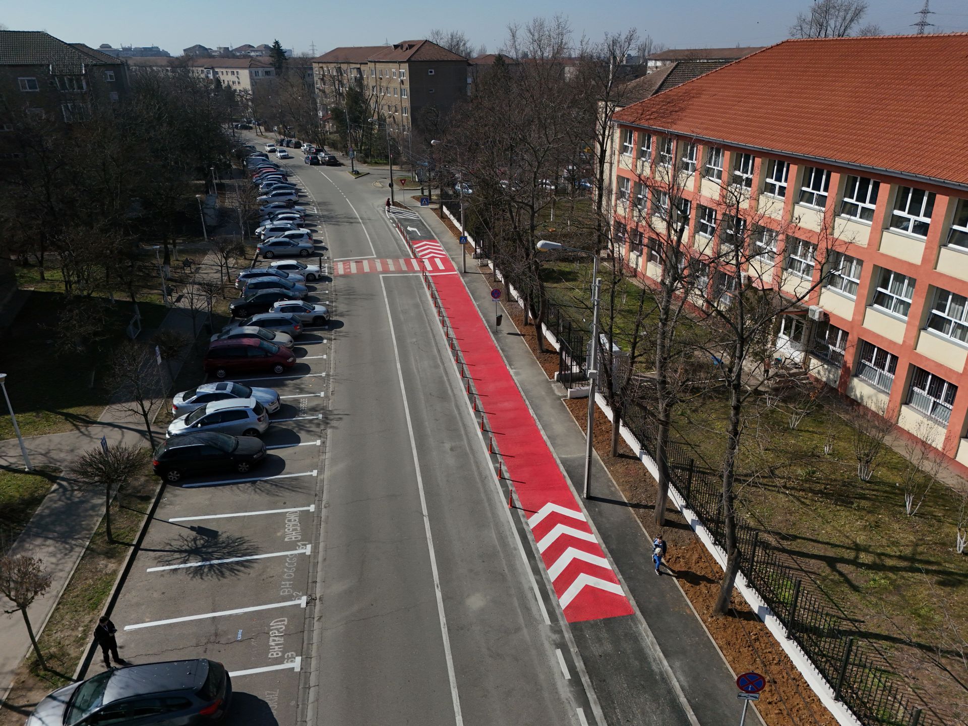 Pentru a asigura siguranța traficului în zonă, au fost realizate marcaje rutiere care delimitează clar spațiile destinate opririi autoturismelor. Aceste măsuri contribuie la fluidizarea circulației și la crearea unui mediu mai sigur pentru elevi, părinți și pietoni.