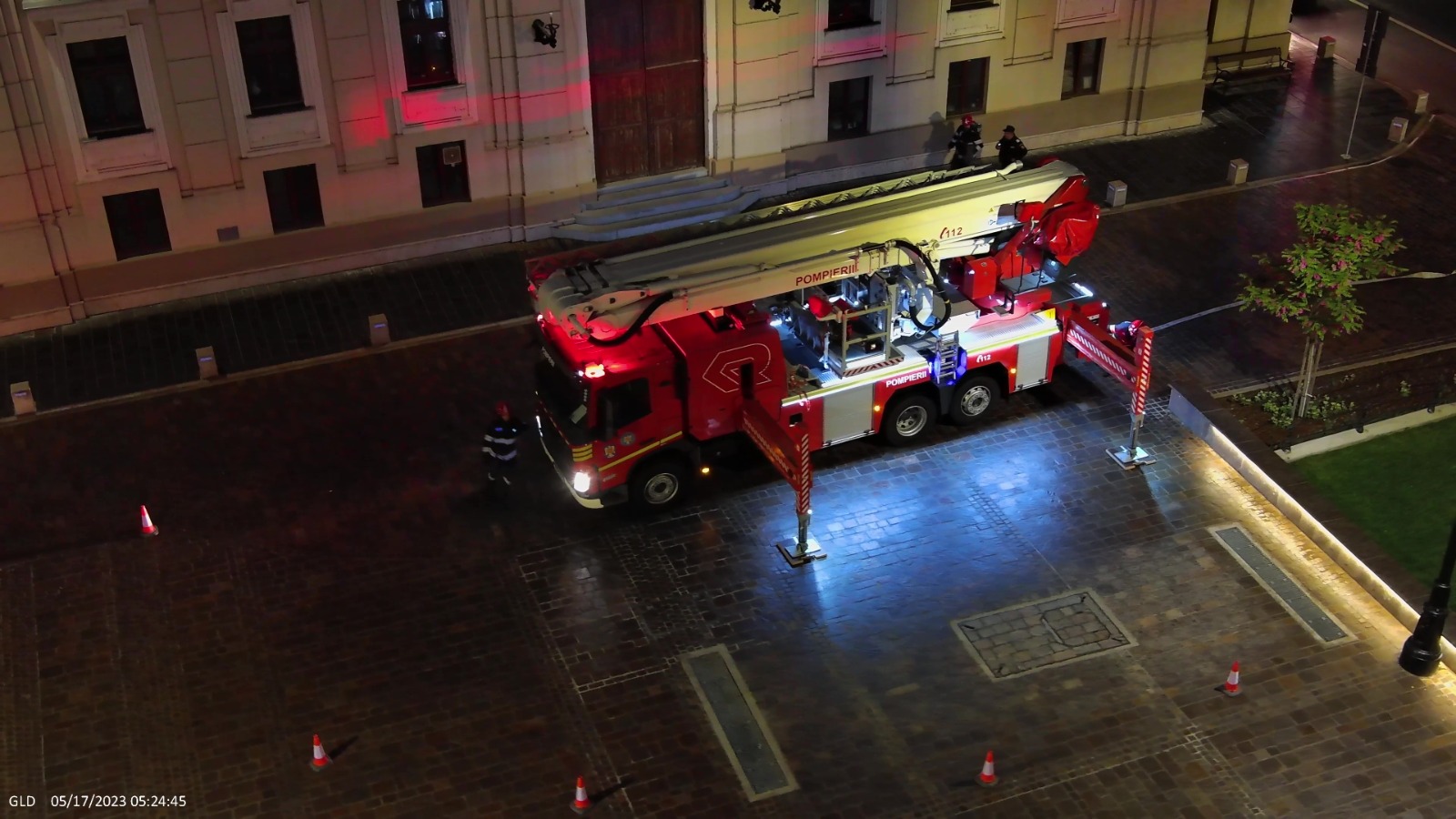 Miercuri, 17 mai, Detașamentul 1 de Pompieri Oradea a desfăşurat un exerciţiu la Teatrul de Stat Oradea în cooperare cu Asociația Salvadrone. Scopul activității a fost perfecționarea pregătirii pentru gestionarea unei situaţii de urgenţă produsă la un astfel de obiectiv turistic, soldată cu persoane rănite, blocate în clădire.