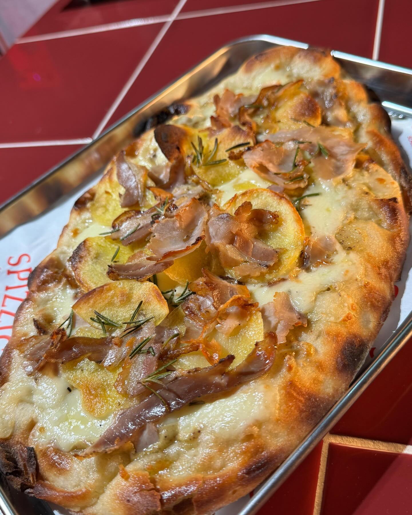 Sau pinsa romana, care e un fel de pizza, dar care se face cu trei feluri de făină și aluatul se lasă la dospit 72 de ore.