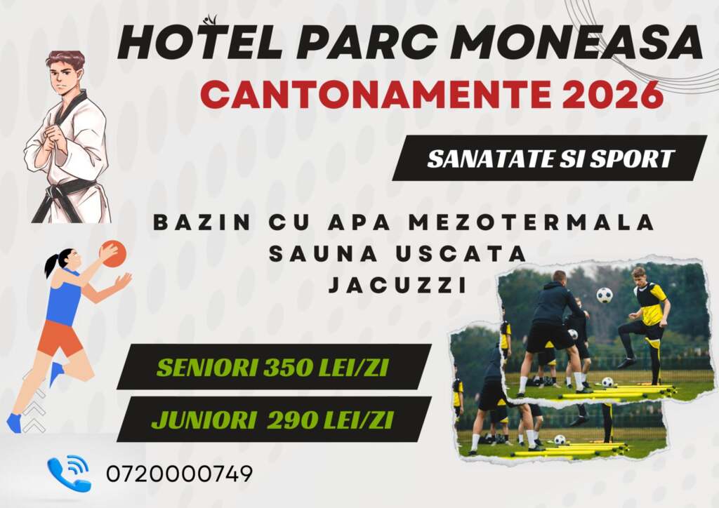 Hotel Parc Moneasa oferă condiții ideale pentru cantonamente de juniori și seniori, combinând antrenamentul cu recuperarea și relaxarea. Bazinul cu apă mezotermală, sauna uscată şi jacuzzi, cazarea confortabilă şi atmosfera liniștită, precum şi meniul adaptat sportivilor sunt suficiente argumente pentru alegerea acestui stabiliment. Iar Ovidiu Fărcuţa, managerul Hotelului Parc, este omul care sfinţeşte locul, cel care se ocupă ca sportivilor să nu le lipsească nimic pentru a se putea concentra strict pe antrenamente.