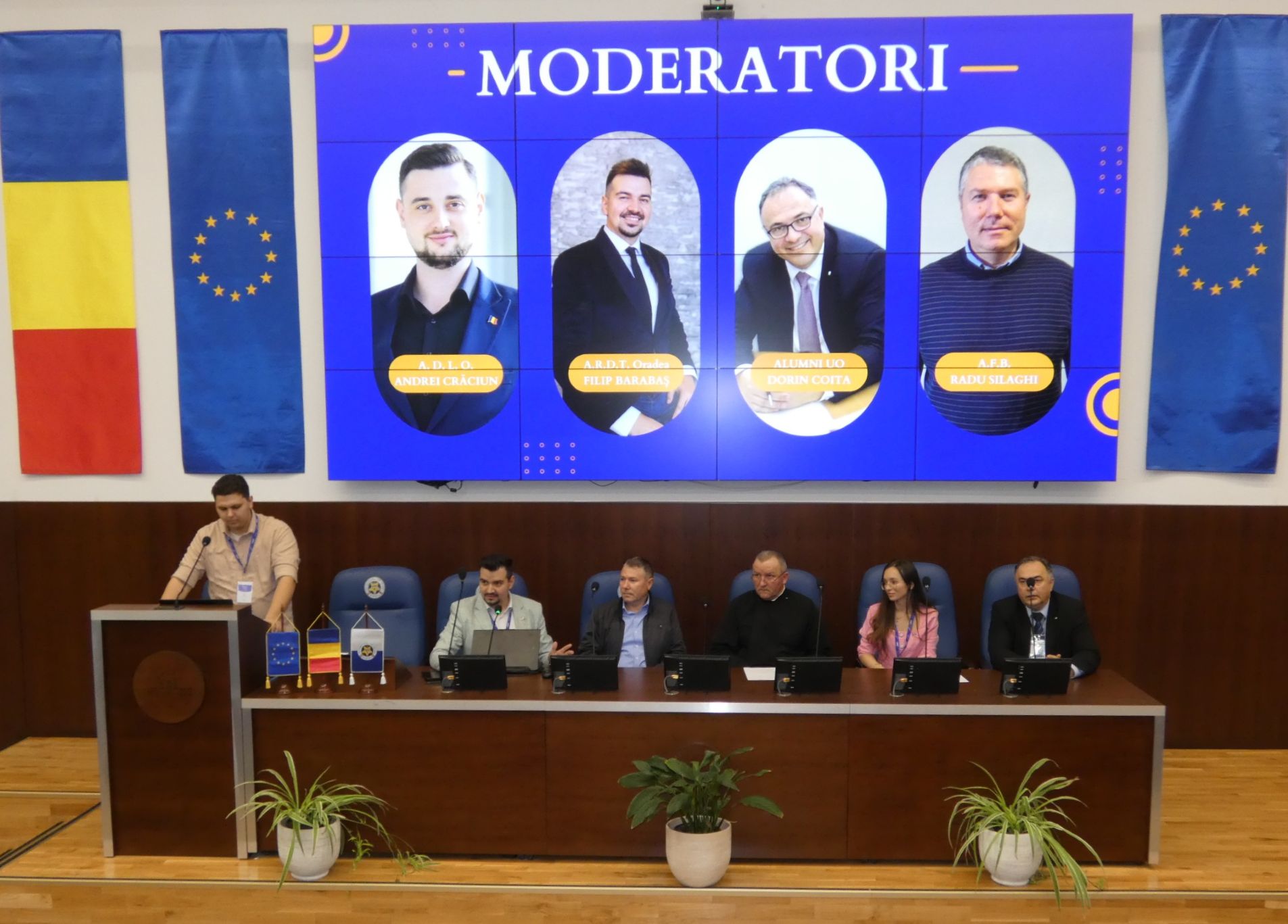 „Au fost cei mai buni ani, din punct de vedere profesional, de care am beneficiat”, a zis, de la microfon, și Andrei Crăciun, absolvent al Universității din Oradea, șef al unui compartiment din cadrul Agenției de Dezvoltare Locală Oradea și consilier local. El i-a îndemnat pe cei prezenți să se implice pentru a sprijini activitățile organizate de autorități, în anul 2027, când Oradea va fi Capitala Tineretului.