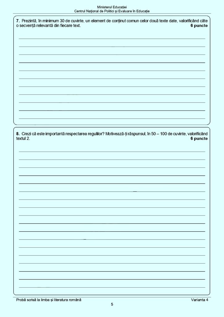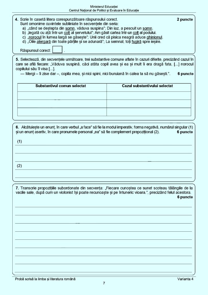 Subiectele a fost sub formă de broșură cu 10 pagini, ultimele două fiind pagini goale, pentru rezolvarea cerințelor. Broșurile au fost împărțite după ora 9:00, iar proba durează până la ora 11:00, elevii cu cerințe speciale putând să lucreze până la ora 12:00.