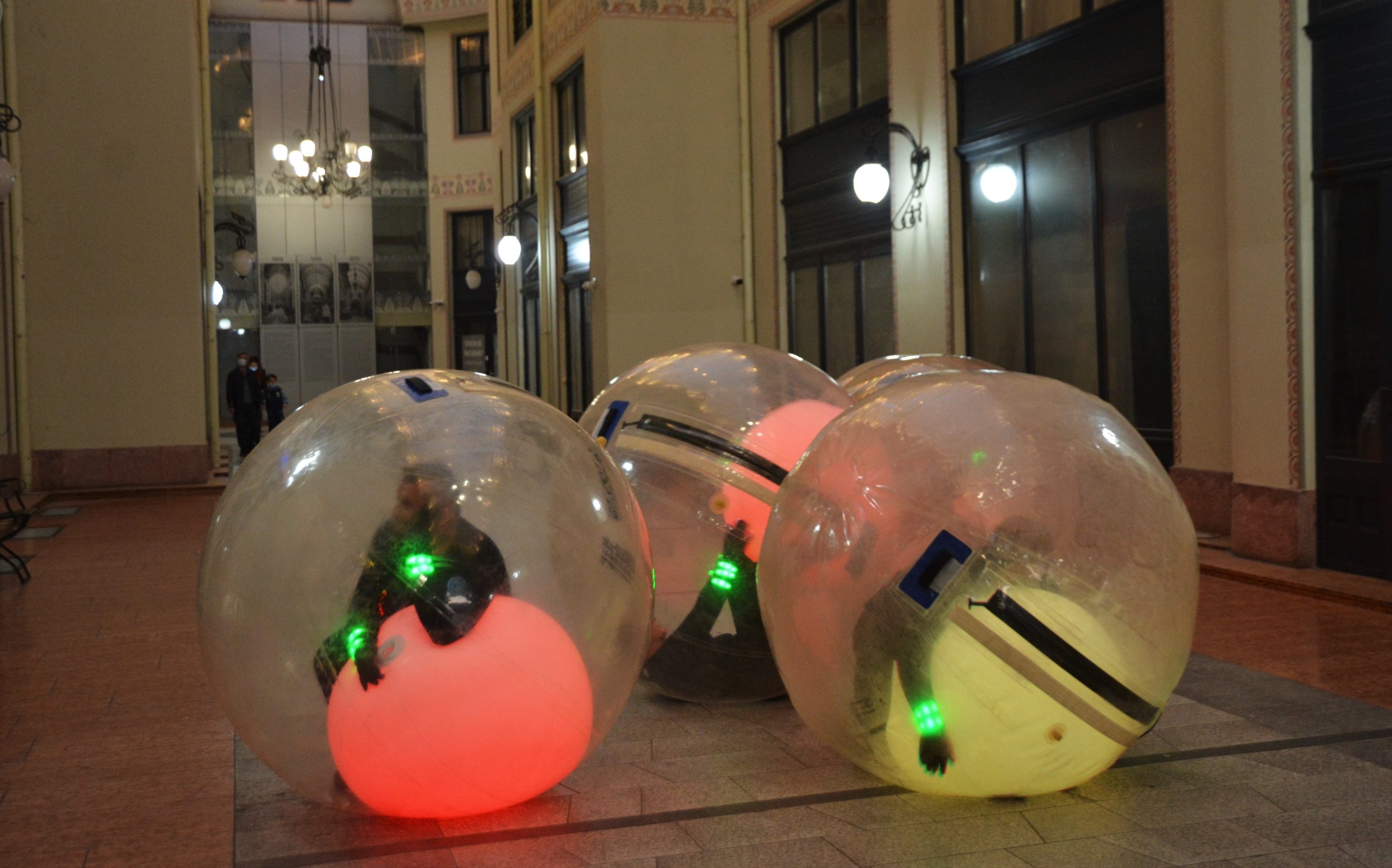 Seara, la orele 21:30, actorii Trupei Arcadia le-au pregătit copiilor o scurtă surpriză, de care au beneficiat live, tot pe pagina de Facebook. În cinci mingi gonflabile au intrat cinci actori ai trupei: Zentania Lupşe, Caliţa Nantu, Daniela Purcărea, Florin Silaghi şi Igor Lungu. În pasajul Palatului Vulturul Negru cele cinci mingi s-au rostogolit într-o mişcare browniană, actorii redevenind copii. Luminiţele colorate şi mingile când roz, când verzi, când albastre au dat un efect deosebit în frumosul decor cu vitralii.