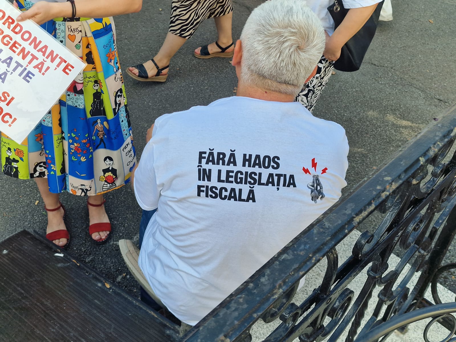 Toți participanții au purtat tricouri personalizate cu mesajul „Fără haos în legislația fiscală”.