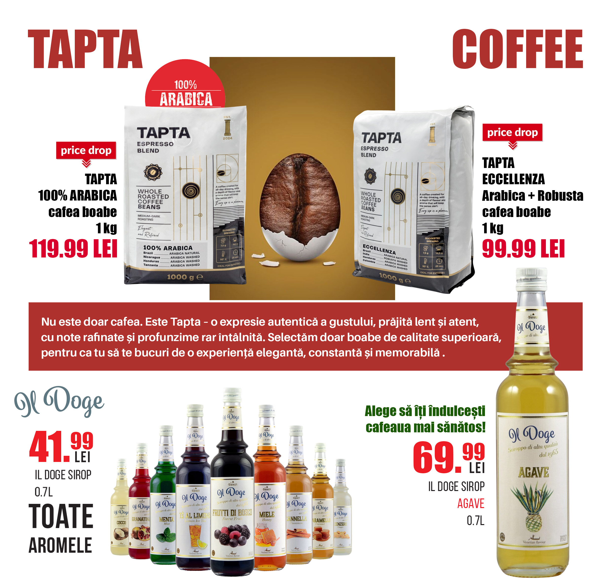 Colecția Tapta Origini – cafea boabe 250 g este disponibilă în hipermagazinul The Store | Drink Shop | WPG.ro din Lotus Retail Park Oradea, completând gama de cafele Tapta și oferind pasionaților ocazia de a explora adevărata diversitate a cafelei de origine.