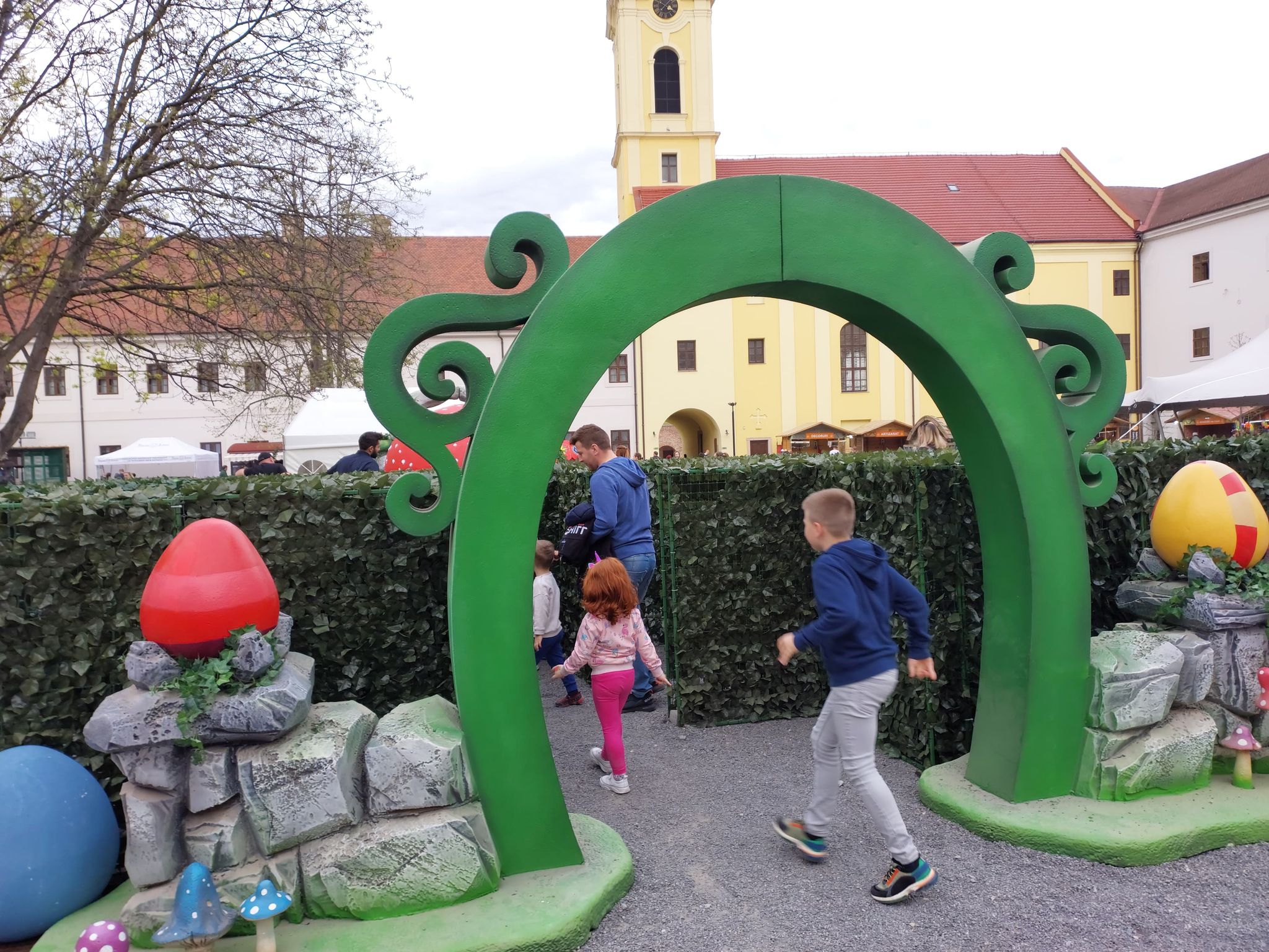 Curtea Cetății Oradea va fi cuprinsă de culori vesele și decoruri desprinse din poveștile tradiționale, fiind pregătită să primească așa cum se cuvine toți vizitatorii. Vor fi amenajate 5 zone, regăsite și în harta Târgului de Paști: căsuțe de lemn cu produse tradiționale și decorațiuni, zona de food , Food trucks, baruri, zona dedicată atelierelor pentru copii, căsuța ZOO și zona destinată caruselului”, transmite Visit Oradea.
