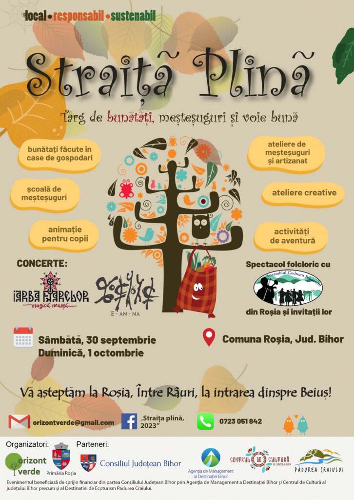 Se pregătesc tarabele și atelierele pentru o nouă ediție a Târgul de bunătăți, meșteșuguri și voie bună „Straiţă Plină”. Dacă anul trecut a fost o ediţie aniversară, împlinindu-se zece ani de la prima ediţie, anul acesta, târgul va dura două zile, sâmbătă, 30 septembrie, şi duminică, 1 octombrie, în aceeaşi locaţie cunoscută „Între râuri”, la intrarea dinspre Beiuş.