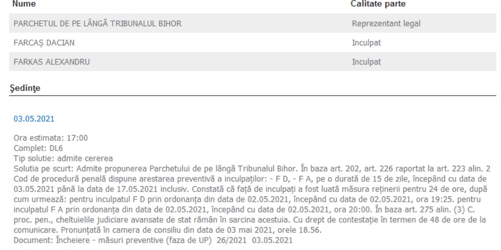 „Facem precizarea că punerea în mișcare a acțiunii penale împotriva inculpaților F.A. și F.D. și arestarea preventivă a acestora reprezintă etape ale procesului penal, reglementate de Codul de procedură penală, și nu pot, în niciun caz, să înfrângă principiul prezumției de nevinovăție”, a precizat Gligor Sabău.