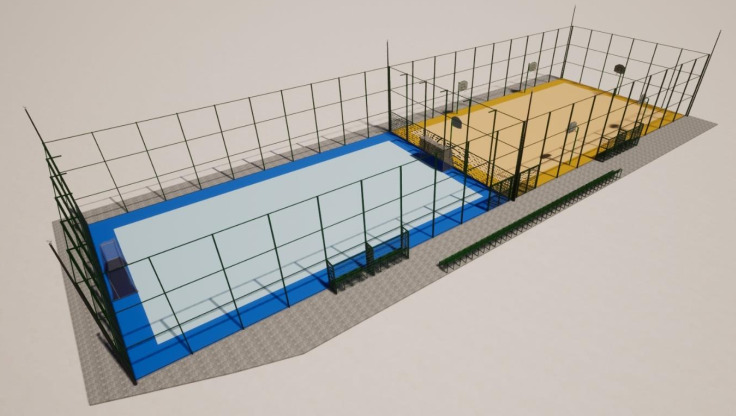 Conform temei de proiectare, vor fi amenajate două terenuri: un teren de sport multifuncțional, cu dimensiunile de 25 m x 15 m, împrejmuit și finisat cu tartan (culoare albastră); un teren de baschet, cu dimensiunile de 26 m x 15 m, de asemenea împrejmuit și finisat cu tartan (culoare galbenă).
