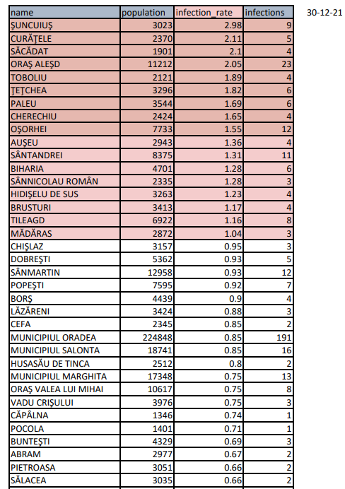 Sfârșitul anului 2021 aduce o nouă creștere a numărului de cazuri în Bihor. Miercuri, 29 decembrie, au fost confirmate 78 de cazuri noi, în timp ce 31 de pacienți au fost declarați vindecați.