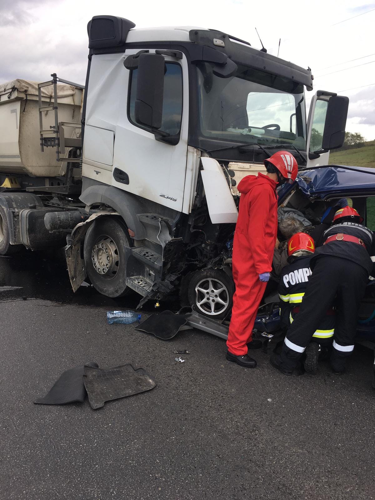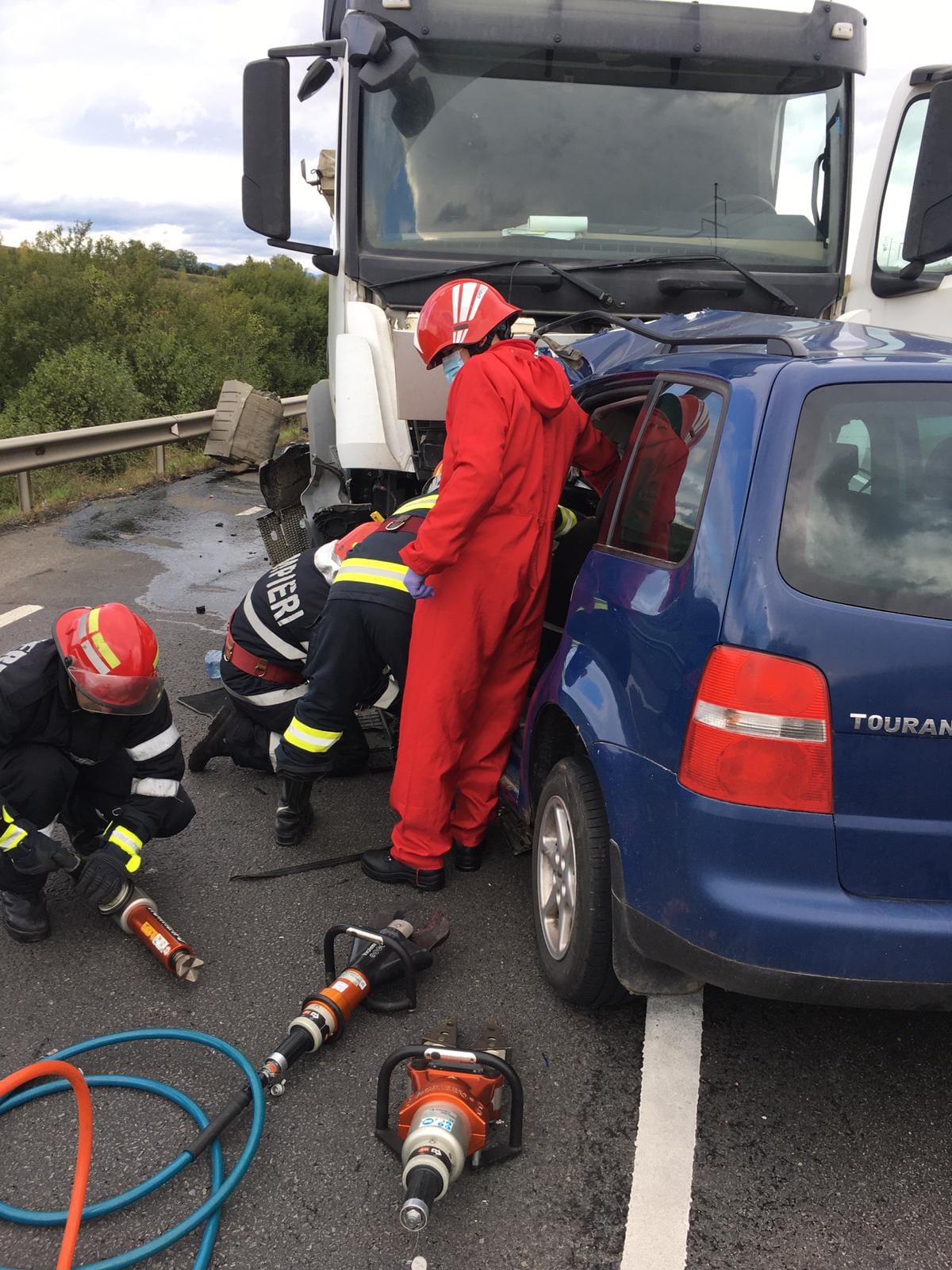 „O autospecială, două echipaj SMURD și un echipaj SAJ au fost alertate, în jurul orei 10.40, ca urmare a unui accident rutier în care au fost implicate un ansamblul de vehicule (cap tractor cu remorcă) și un autoturism. Salvatorii au găsit două persoane încarcerate în autoturismul prins sub cabina ansamblului de vehicule, care prezentau traume incompatibile cu viața, nefiind posibile aplicarea manevrelor de resuscitare pentru bărbatul și femeia de circa 50 de ani. Intervenția a fost una dificilă având în vedere gradul ridicat de încarcerare al celor două persoane din autoturism. Șoferul autocamionului a refuzat consultul medical.”, a transmis ISU Cluj.
