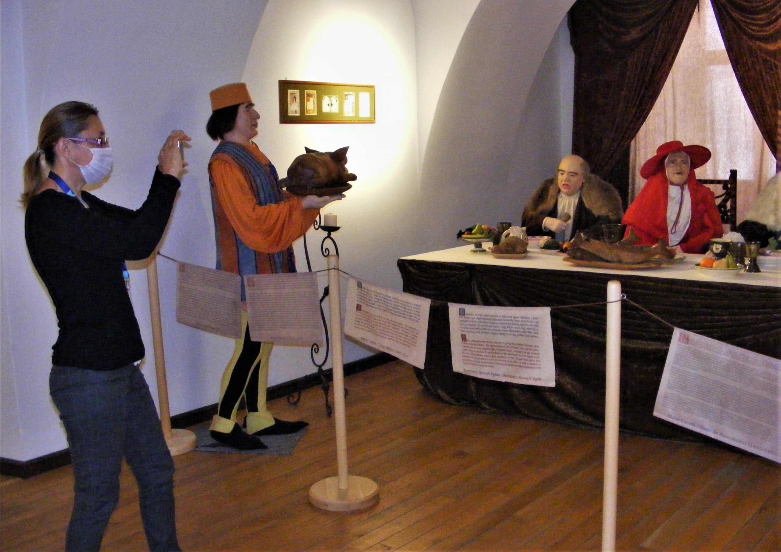 Şi pentru angajaţii muzeului această nouă formulă este ciudată şi încearcă să se adapteze cât mai bine noilor condiţii. Din spatele măştilor de protecţie poţi doar bănui zâmbetul amabil cu care ne-au obişnuit. Traseele de vizitare sunt marcate pe coridoare cu autocolante cu săgeţi galbene sau portocalii, din loc în loc fiind panouri în care eşti avertizat să urmăreşti traseul. După vizitarea expoziţiilor de la etajul întâi pe săgeata galbenă se urcă pe săgeata portocalie la etajul doi, după care se coboară pe la Lapidariu, apoi pe la expoziţia DaVinci, ieşindu-se pe lateral, în curtea mică a cetăţii, în aşa fel încât la terminarea traseului vizitatorii să nu se intersecteze cu cei care urmează să intre în muzeu.