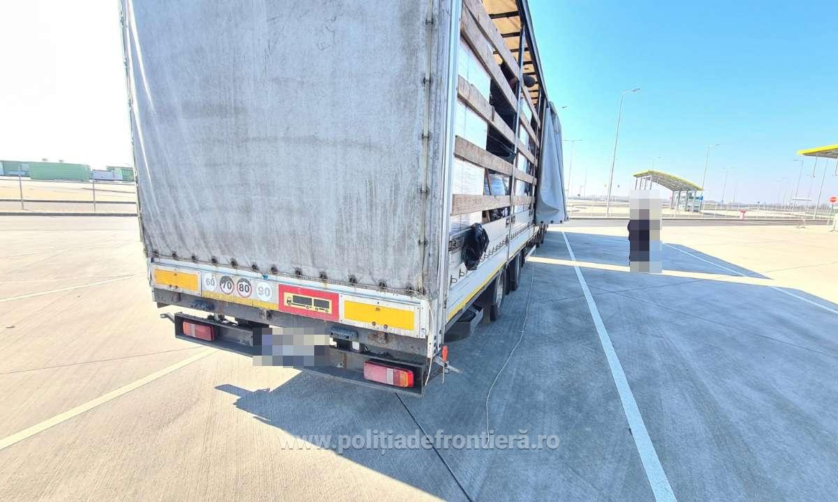 În urma controlului mijlocului de transport, în interiorul compartimentului de marfă, au fost descoperiţi trei cetăţeni străini.