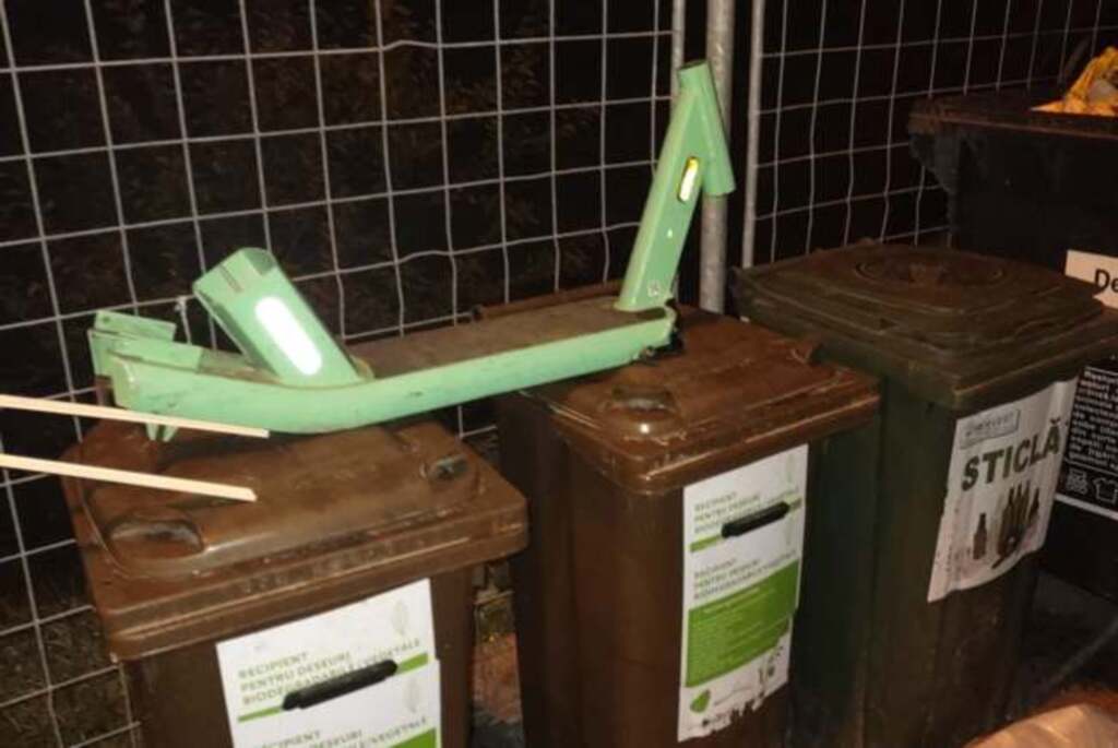 În poză se vede cum trotineta Bolt nu mai avea la propriu ghidonul, bateria dar nici roțile. Cel mai probabil niște oameni cu „bun simț” s-au gândit cum sa facă rapid niște bani și să distrugă un bun care nu le aparține. Potrivit orădeanului care a postat poza atunci, trotineta se află în țarcul de gunoi de la blocurile ANL de pe Bulevardul Ștefan Cel Mare din Oradea.