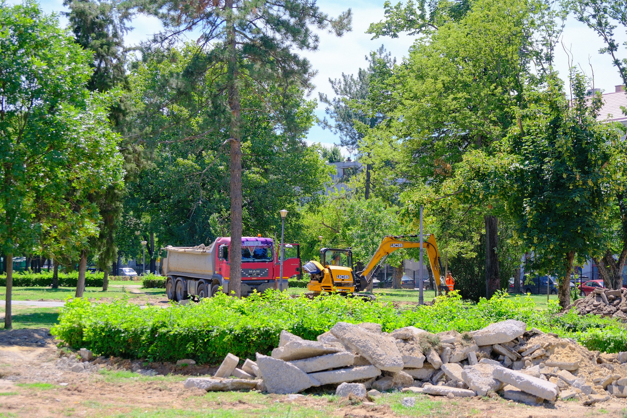 Porțile parcului au fost închise cu lacăt, iar muncitorii au început să spargă trotuarele.