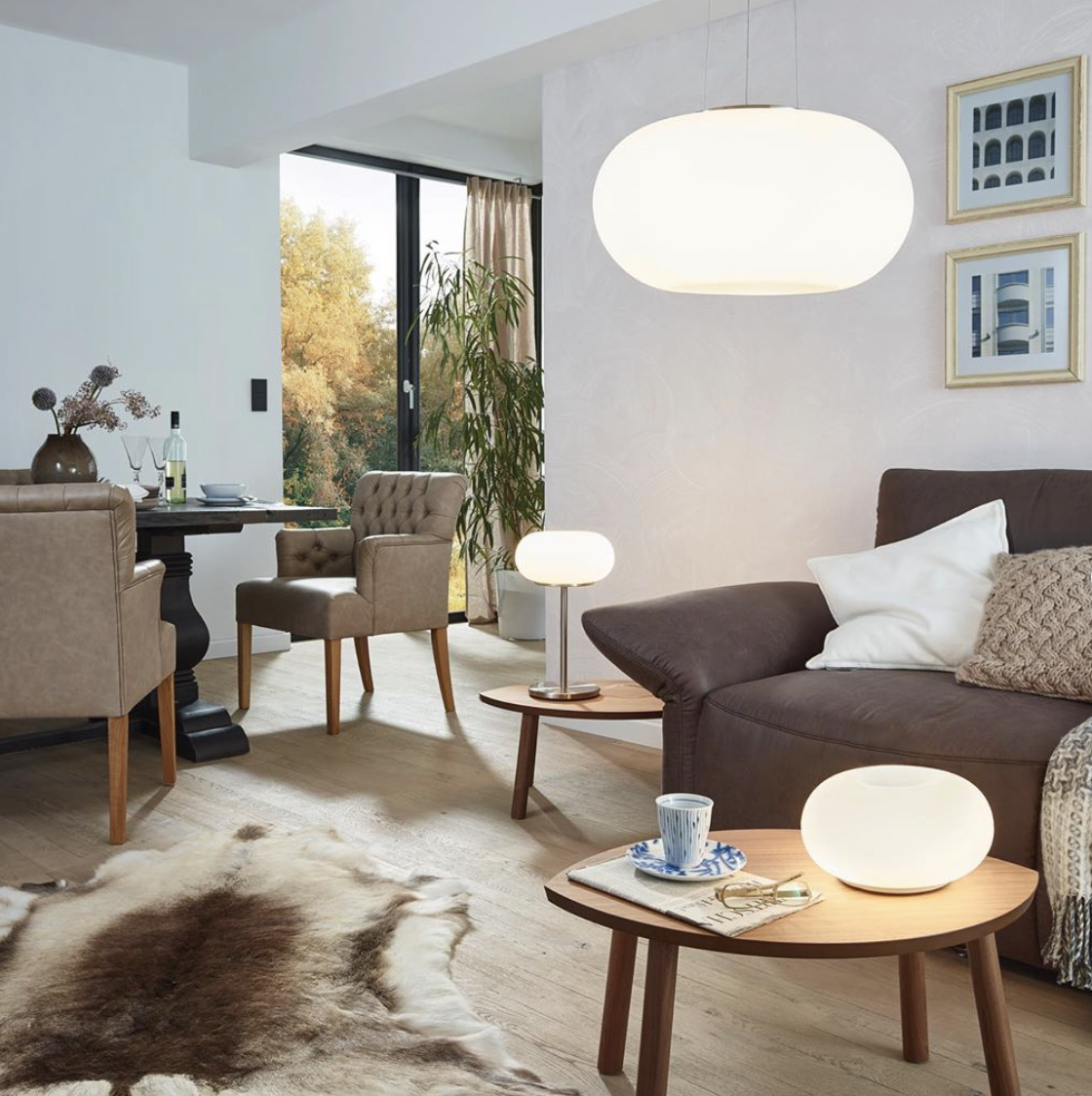 Un alt truc clasic de amenajare a spațiului: utilizează mobilier și decor cu părți transparente, cum ar fi mese sau uși de mobilă din sticlă, pentru a elimina barierele pentru ochi. La fel te poți juca cu corpuri transparente de iluminat, cum ar fi un pendul sau o lustră MURMILLO.