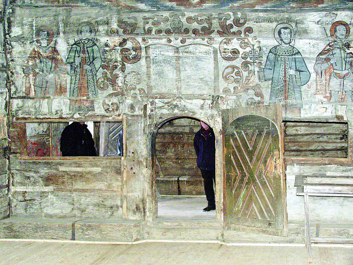 Turnul, cu silueta lui zveltă, a fost ridicat de meșterul Tulea Ilie, același care a decorat și portalul de la intrare, o adevărată bijuterie în lemn, împodobit cu brâuri în relief. Turnul bisericii din Rieni, cu coiful piramidal surmontat de o săgeata ascuțită, atrage de departe atenția trecătorilor. Pictura aparține meșterului argeșean David Zugravu, care a realizat și uşile împărăteşti, semnate şi datate în 1755. Biserica din Rieni e prima pictată de acest meșter din Curtea de Argeș, care s-a format în stil brâncovenesc. Biserica din Rieni a fost considerată o expoziție de artă populară, cu icoane pe sticlă, cu țesături vechi ce atârnă pe pereti, cu policandre și candelabre de lemn, ori cu globuri de sticlă aduse din manufactura de la Belgrad. JB – V.B.