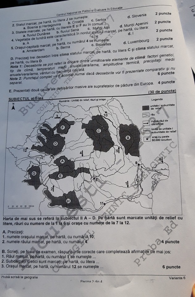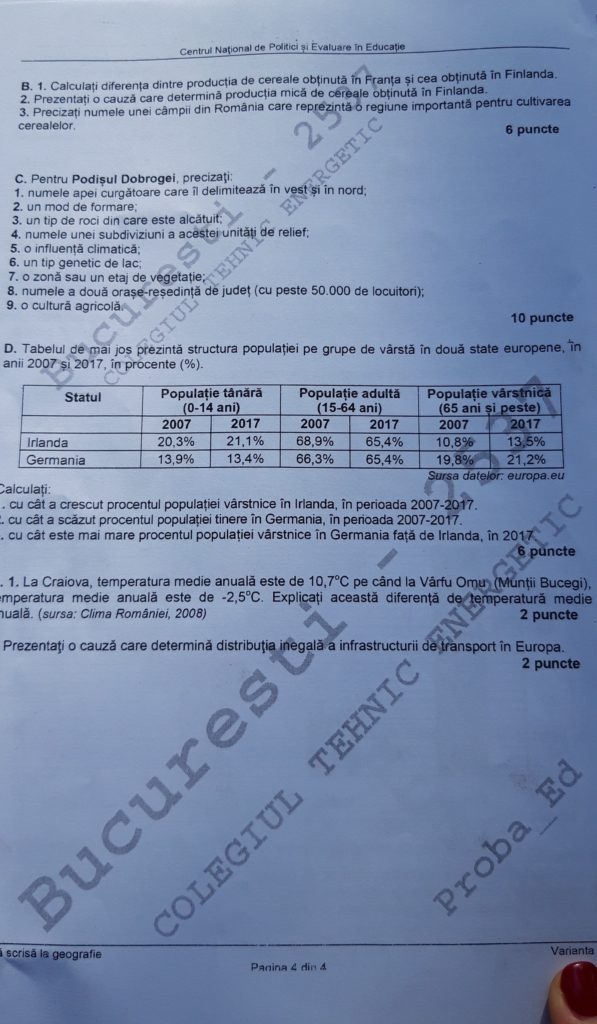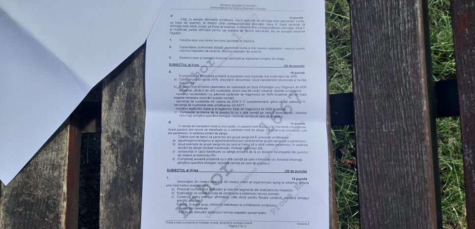 În funcţie de profil, candidații au susținut la alegere proba scrisă la: Geografie, Anatomie, Biologie, Chimie, Fizică, Informatică sau Ştiinţe socio-umane.