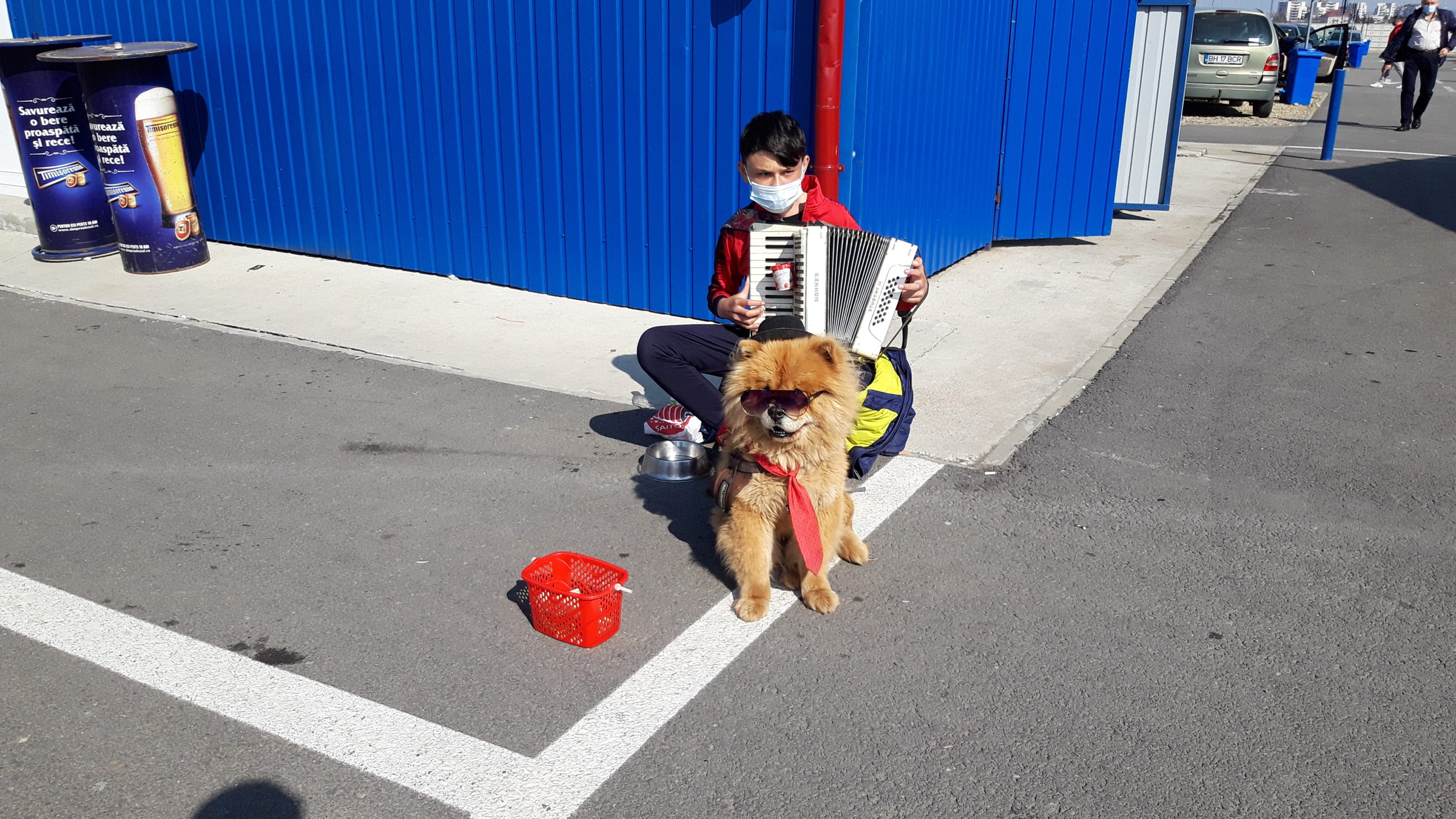 Nu puține au fost persoanele care s-au oprit să-l asculte pe băiețel și să se minuneze de cățelul care-l însoțea.