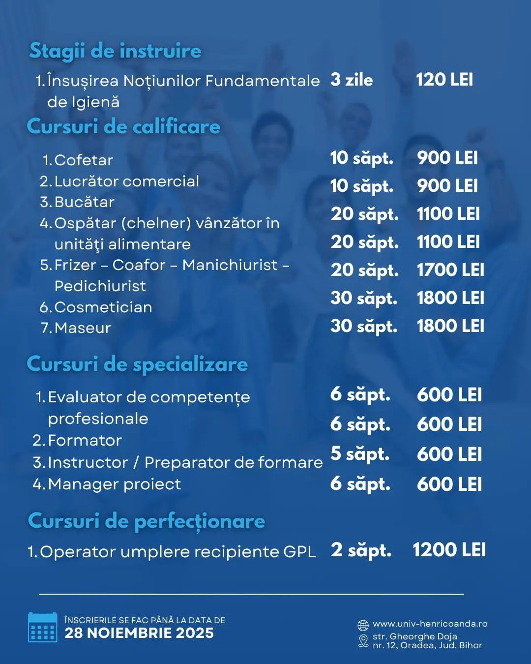 Din luna decembrie dăm startul noilor grupe pentru următoarele cursuri de formare!