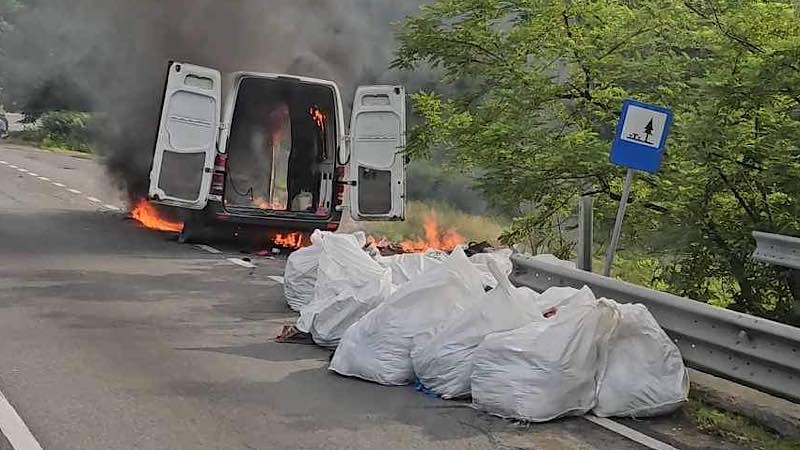 În autovehicul au fost mai mulți saci cu haine strânse din donații.