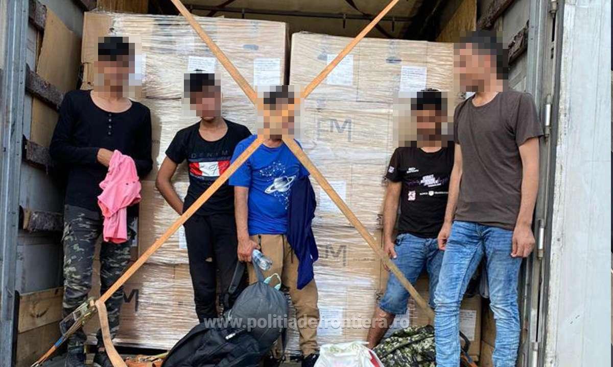 „În urma efectuării controlului amănunţit al mijlocului de transport, au fost descoperiți, ascunși în compartimentul pentru marfă, cinci cetățeni străini”, transmite comisar-șef de poliție Laura Beatrice Bondar.