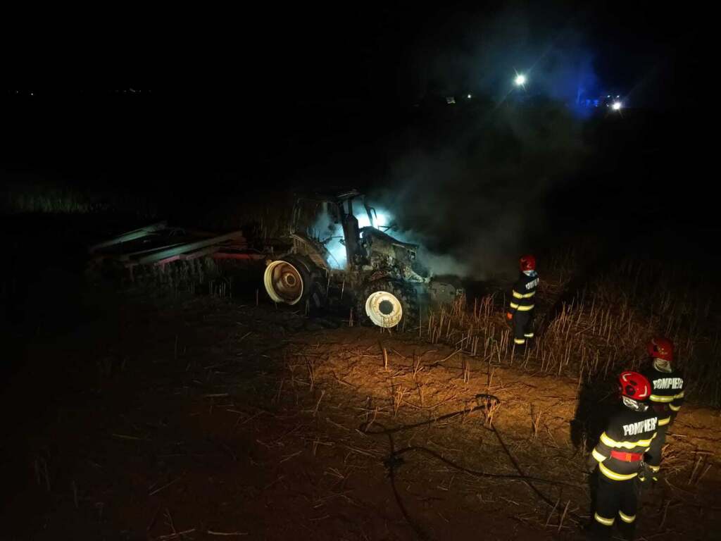La sosirea forțelor de intervenție, flăcările se manifestau violent la un tractor, pompierii limitând pagubele doar la utilajul respectiv, care a ars în proporție de aproximativ 90%.
