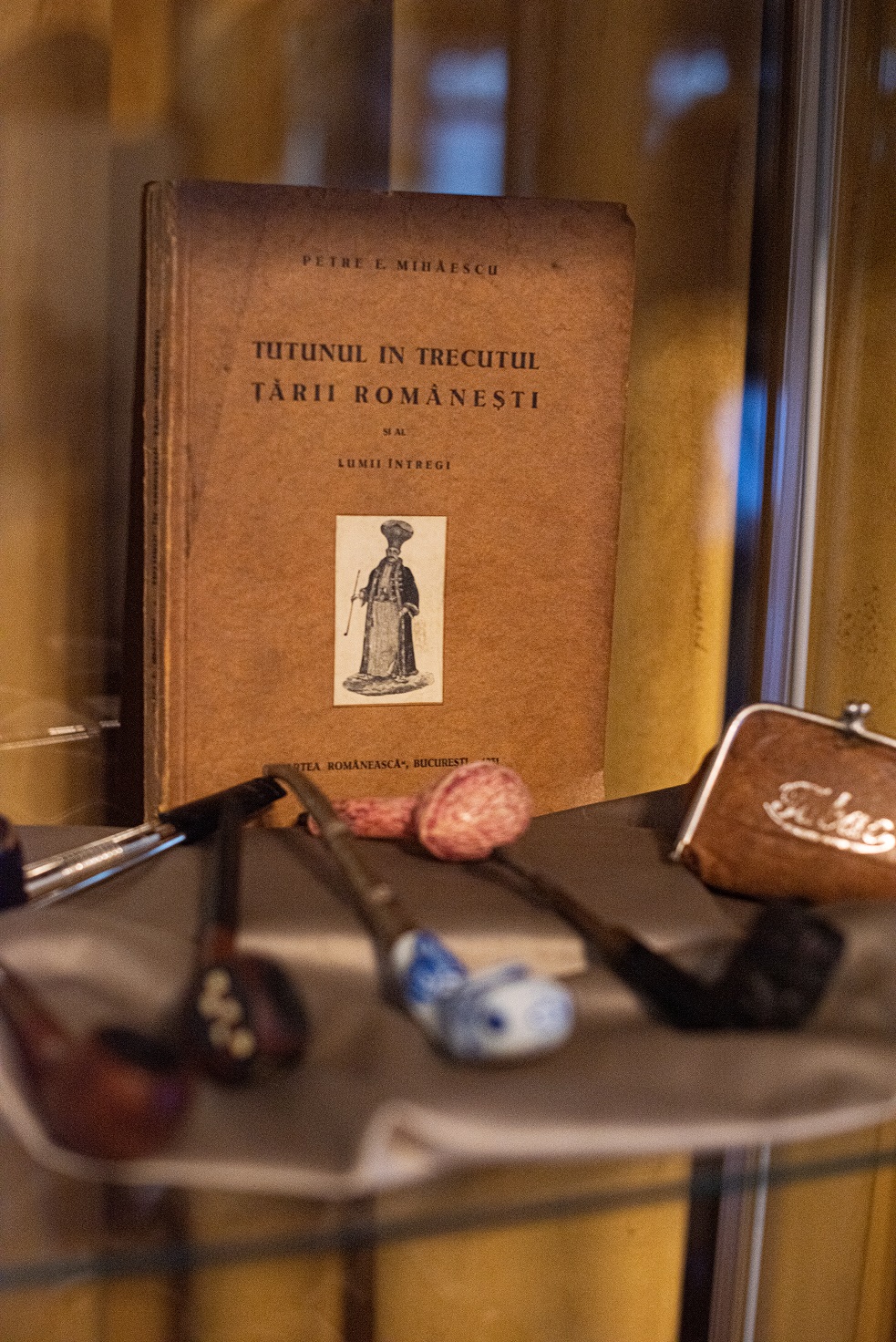 Mai este expusă şi cartea lui Petre E. Mihăescu, „Tutunul în trecutul Ţării Româneşti şi al lumii întregi”, scoasă în 1931 la editura Cartea Românescă. Pe lângă tabachere şi brichete sau suporturi de pipe se află şi un port trabuc inscripţionat cu numele lui Mihály Leipnik, care avea unul dintre cele mai mari magazine din Oradea la începutul anilor 1900.