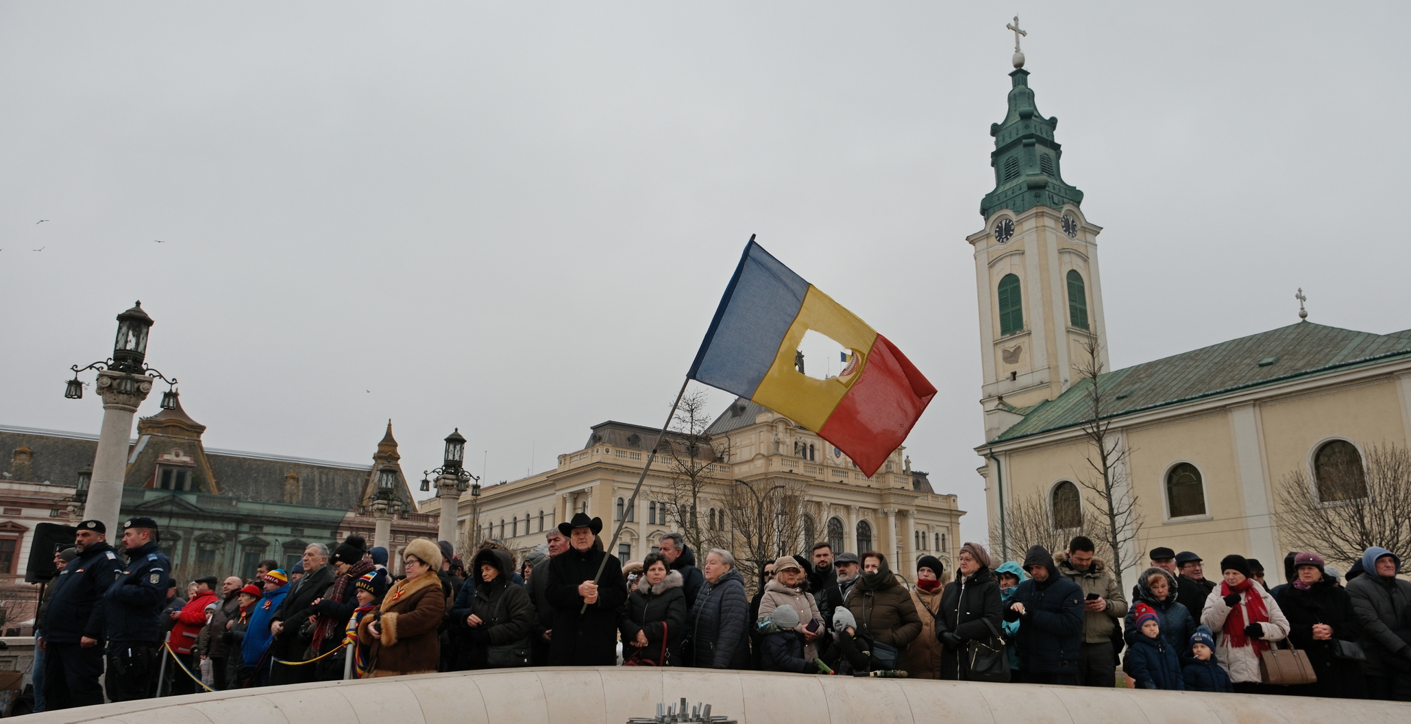 Miercuri a fost sărbătoare în centrul Oradiei: oficialitățile, pe mijlocul platoului central de la poalele statuii și orădenii de rând, dincolo de garduri, au aniversat Unirea Principatelor Române. În rândul oficialităților s-au aliniat parlametari de mai multe culori politice și oficialități locale: Mircea Mălan, vicepreședintele Consiliului Județean Bihor, Florin Birta, Antonia Nica și Marcel Dragoș – primarul și viceprimarii, Dumitru Țiplea și Emilian Pavel – Prefectul și subprefectul Județului Bihor dar și reprezentanți ai cultelor și instituțiilor locale dar și cadre militare aflate în rezervă.