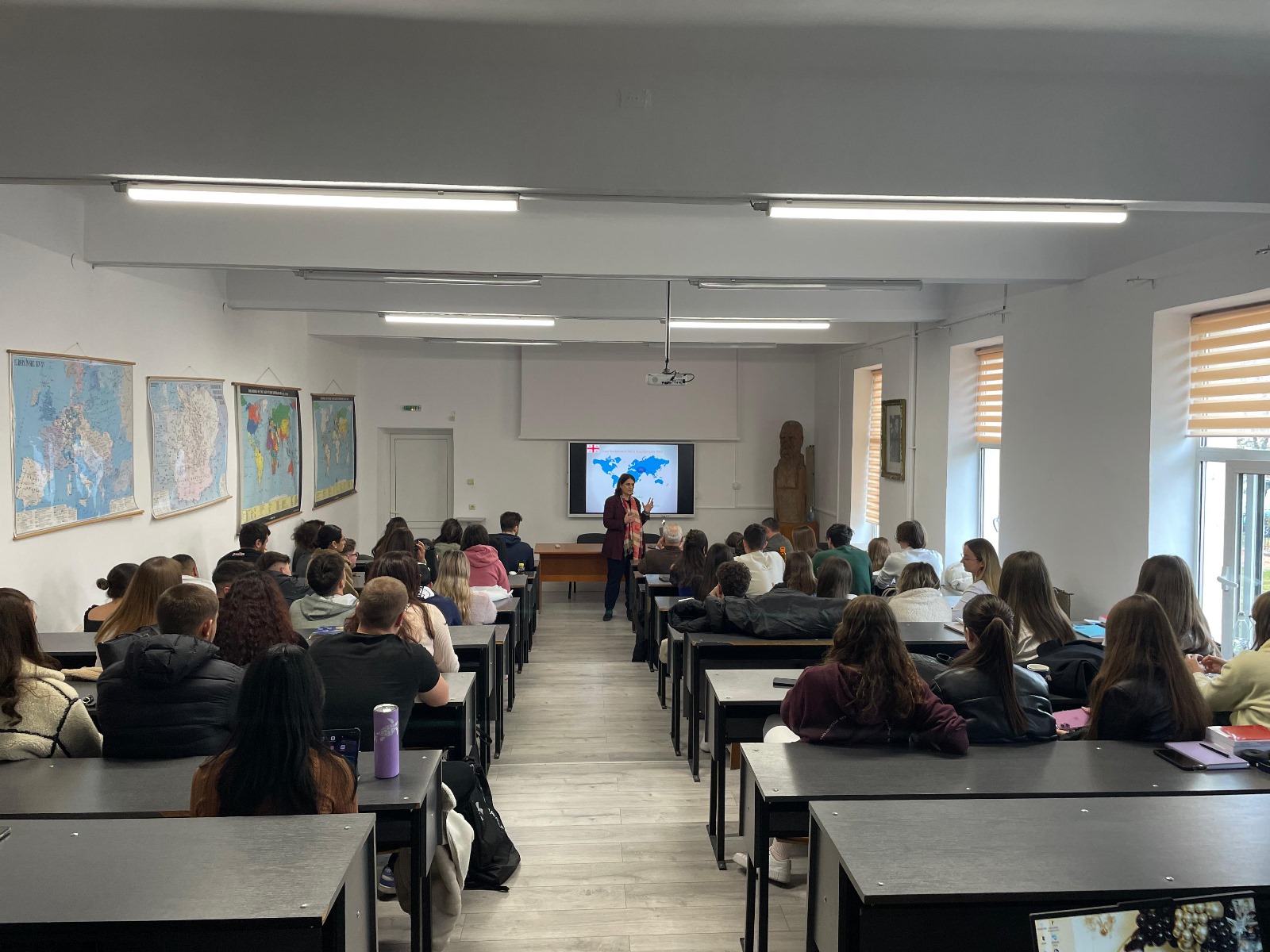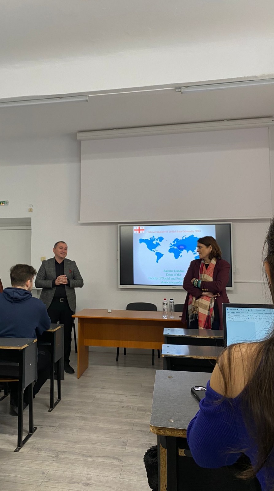 Cu acest prilej, universitarul georgian le-a vorbit studenților de la Departamentul de Relații Internaționale al Facultății de Istorie, Relații Internaționale, Științe Politice și Științele Comunicării (FIRISPSC) despre țara sa și provocările aflate înaintea acesteia.