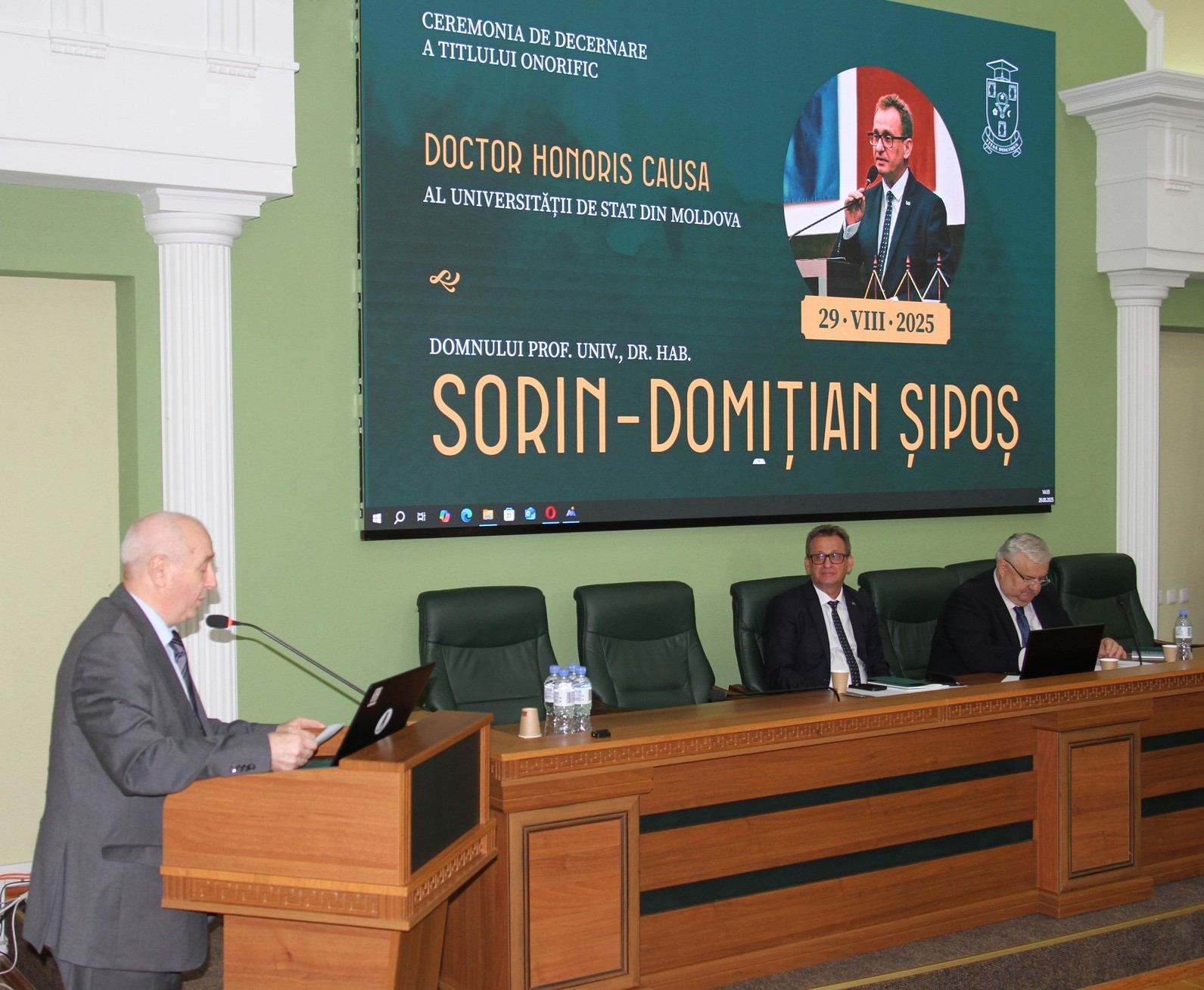 Evenimentul festiv a fost deschis de rectorul USM, prof. univ. dr. Igor Șarov, care a evidențiat meritele academice și rolul marcant al profesorului Sorin Șipoș în dezvoltarea istoriografiei și culturii românești contemporane.