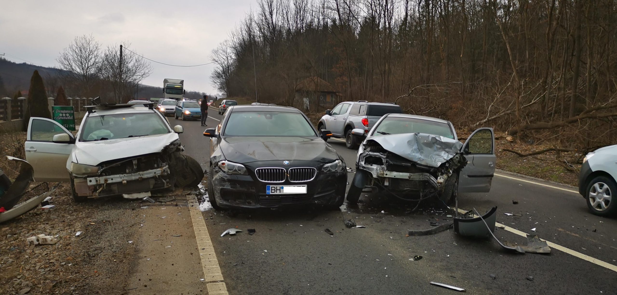 Accidentul rutier s-a produs în jurul orei 16:45, pe DN76, la ieșirea din Hidișeu de Jos înspre Oradea. În accident au fost implicate 5 autoturisme, este practic o coliziune în lanț. În urma evenimentului o singură persoană a fost rănită și a fost transportată la spital pentru investigații medicale.