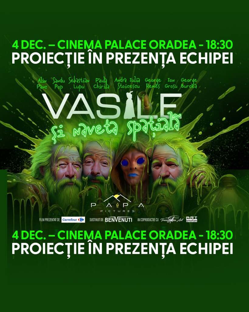 După „Transilvania Ninja”, lansat anul trecut în perioada Sărbătorilor de iarnă, Alin Panc și Sandu Pop pregătesc acum o nouă comedie: Vasile și Naveta spațială. Este cel de-al 10-lea film produs de Papa Film.