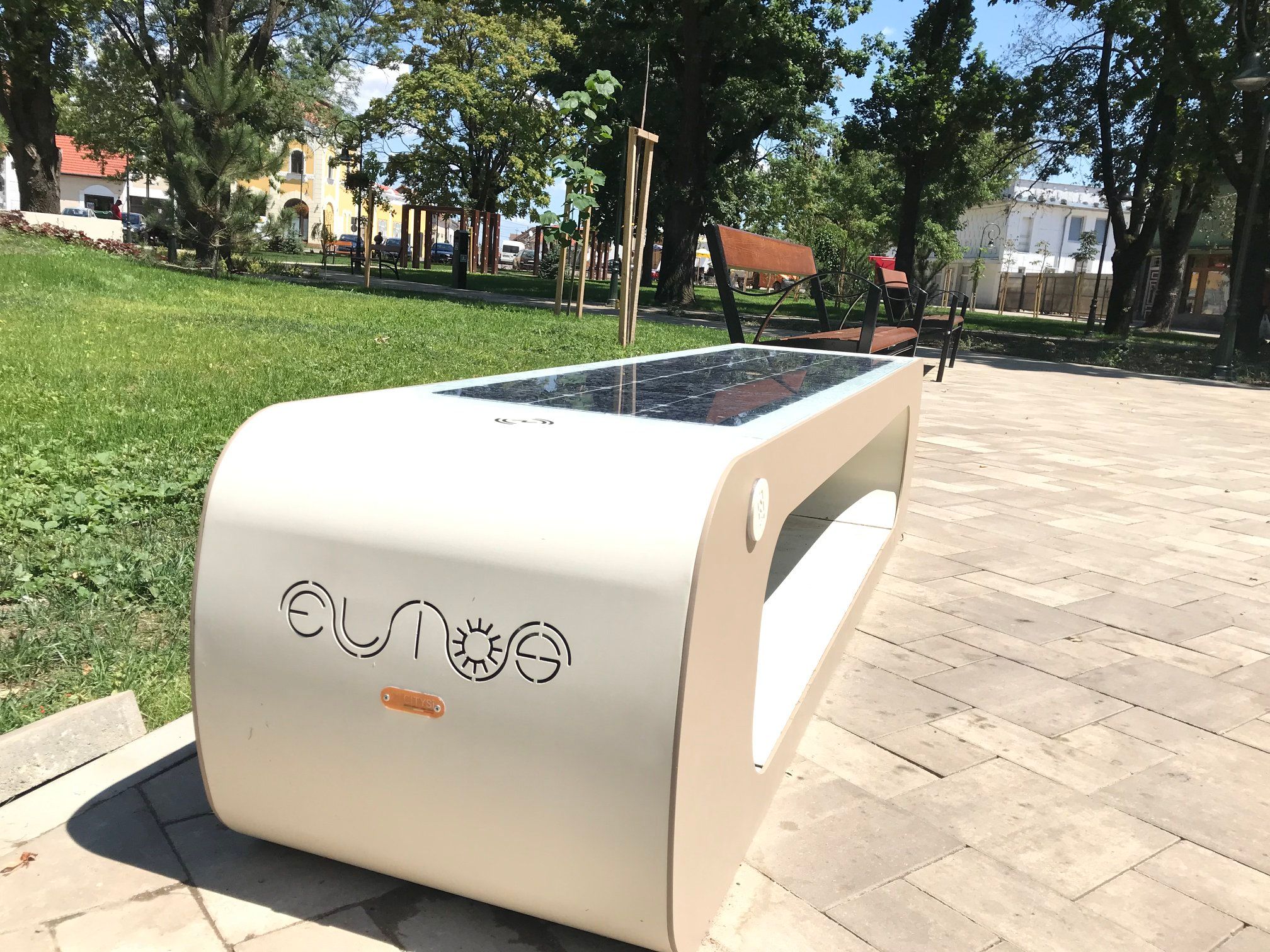 “Printre multele piese de mobilier noi și flori colorate se numără o bancă inteligentă, care, după cum sugerează și numele, este diferită de celelalte „tradiționale”. Este o piesă de mobilier stradal exterior, independent de rețea, cu panou solar, cu bandă LED night, încărcător USB, hotspot, WiFi gratuit, care oferă energia de a încărca telefoanele mobile cu panouri solare încorporate”, anunță Primăria Salonta.