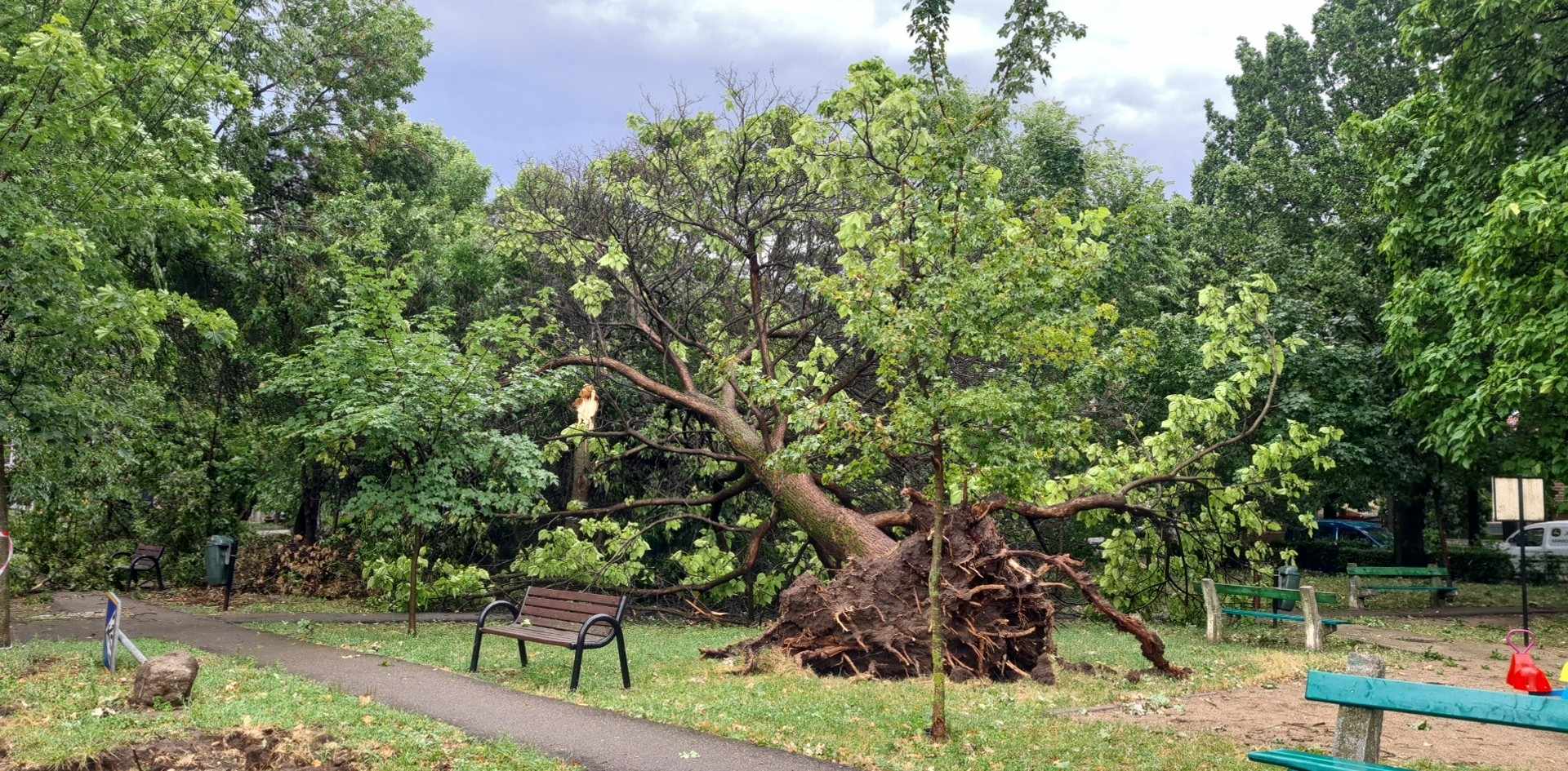 Pompierii Detașamentului 1 și 2 Oradea acționează pe raza întregului municipiu, unde vântul puternic a desprins acoperișurile mai multor imobile și a doborât mai mulți copaci pe carosabil și autoturisme.