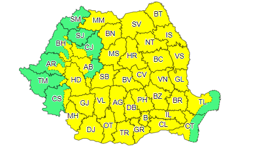 „La munte, în Oltenia, Muntenia, Moldova, zona continentală a Dobrogei și local în Transilvania și Maramureș vor fi perioade cu instabilitate atmosferică accentuată. Aceasta se va manifesta prin averse torențiale, descărcări electrice, intensificări ale vântului și pe alocuri vijelii și grindină. În intervale scurte de timp sau prin acumulare cantitățile de apă vor depăși 25…40 l/mp și pe arii restrânse 50…70 l/mp”, transmite ANM.