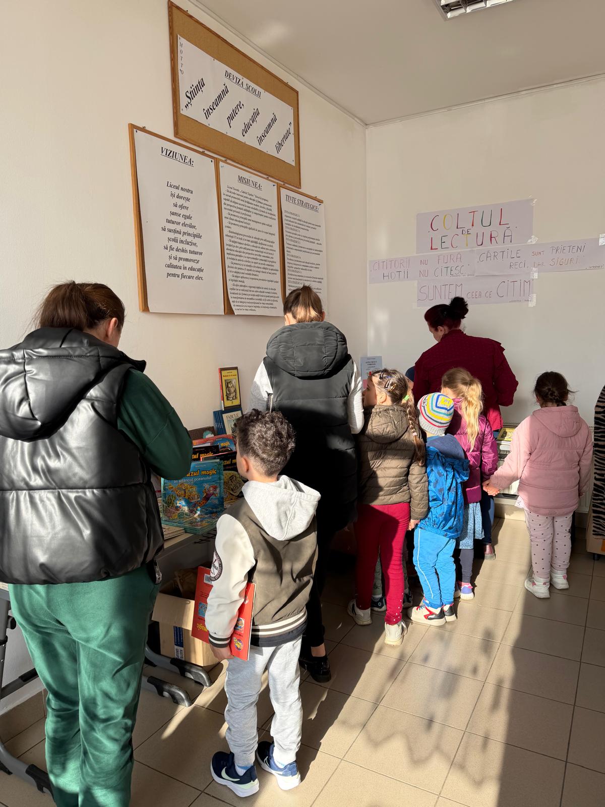 Preșcolarii au fost cei care au ajuns primii la standul cu cărți, frumos colorate, însoțiți de doamnele educatoare /părinți. Apoi au urmat elevii din clasele primare, alături de doamnele învățătoare. În final, cei din gimnaziu au avut și ei parte de surprize plăcute.