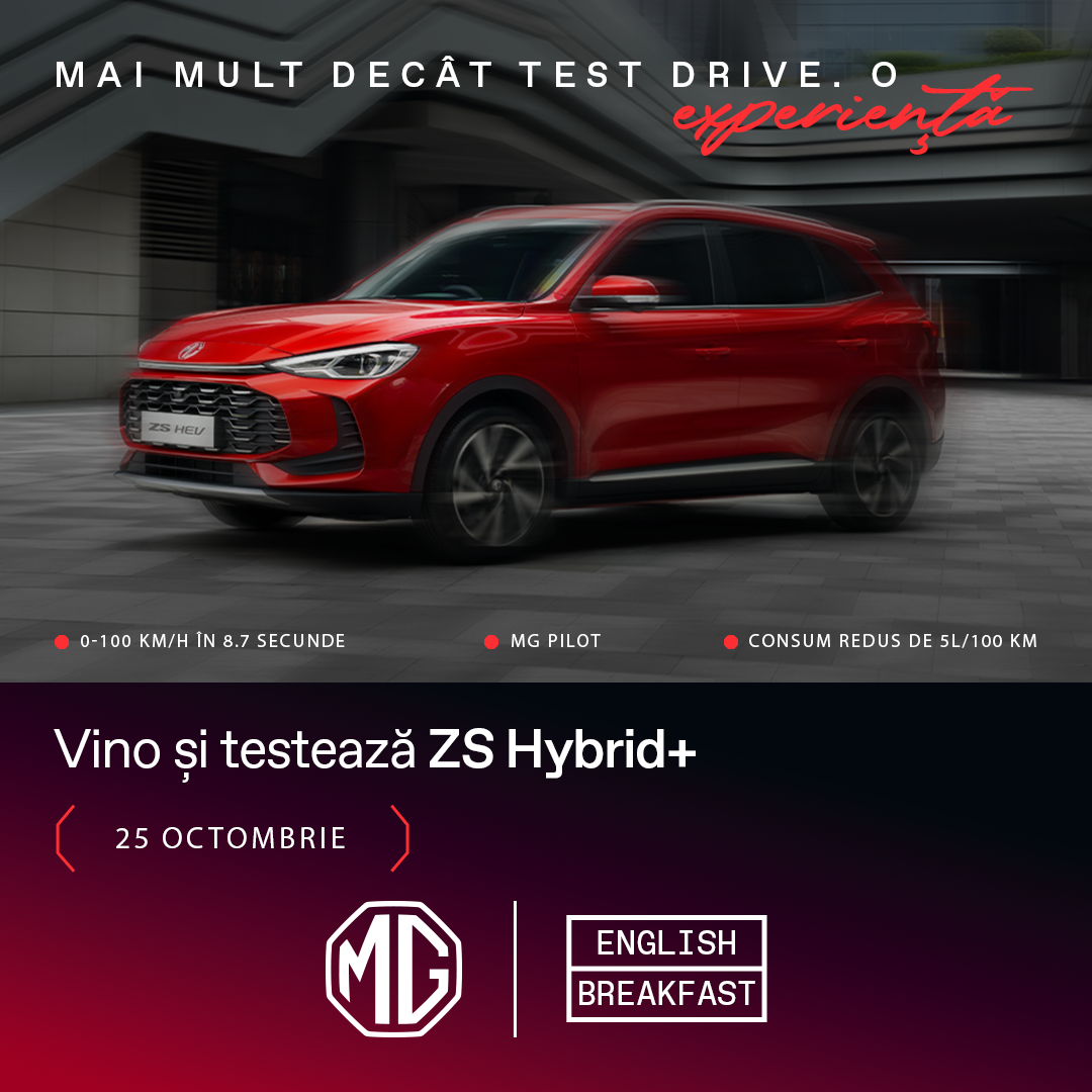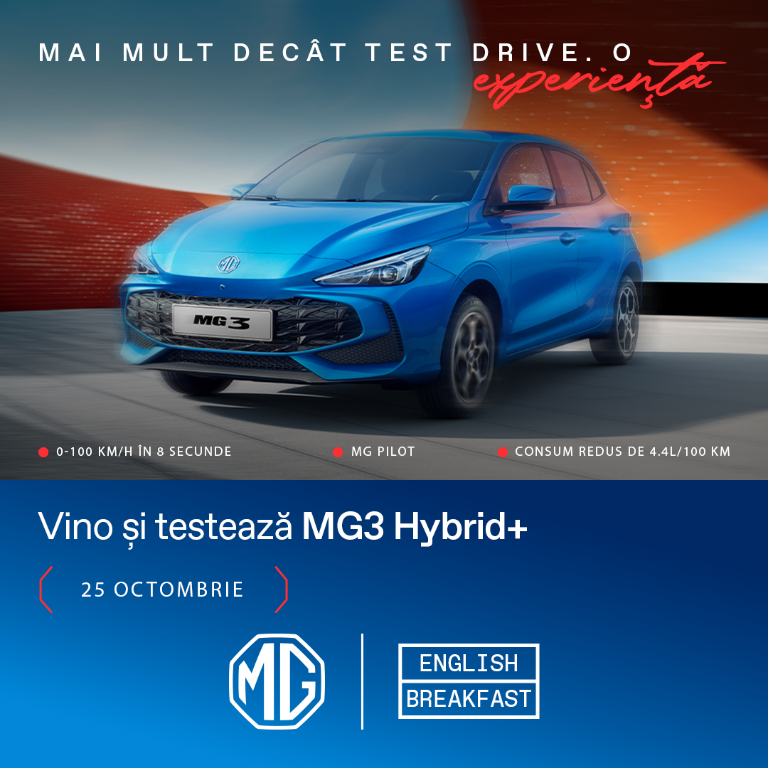 Link înscriere test drive: https://www.mgmotor.ro/mg-english-breakfast